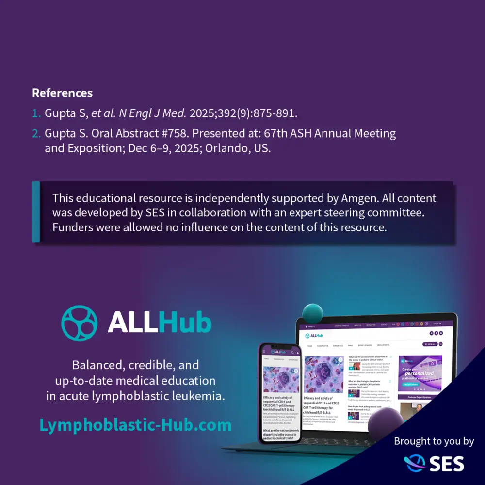 The ALL Hub is an independent medical education platform, sponsored by Amgen, Autolus, Jazz Pharmaceuticals, and Pfizer and supported through an educational grant from the Hippocrate Conference Institute, an association of the Servier Group. Funders are allowed no direct influence on our content. The levels of sponsorship listed are reflective of the amount of funding given. View funders.