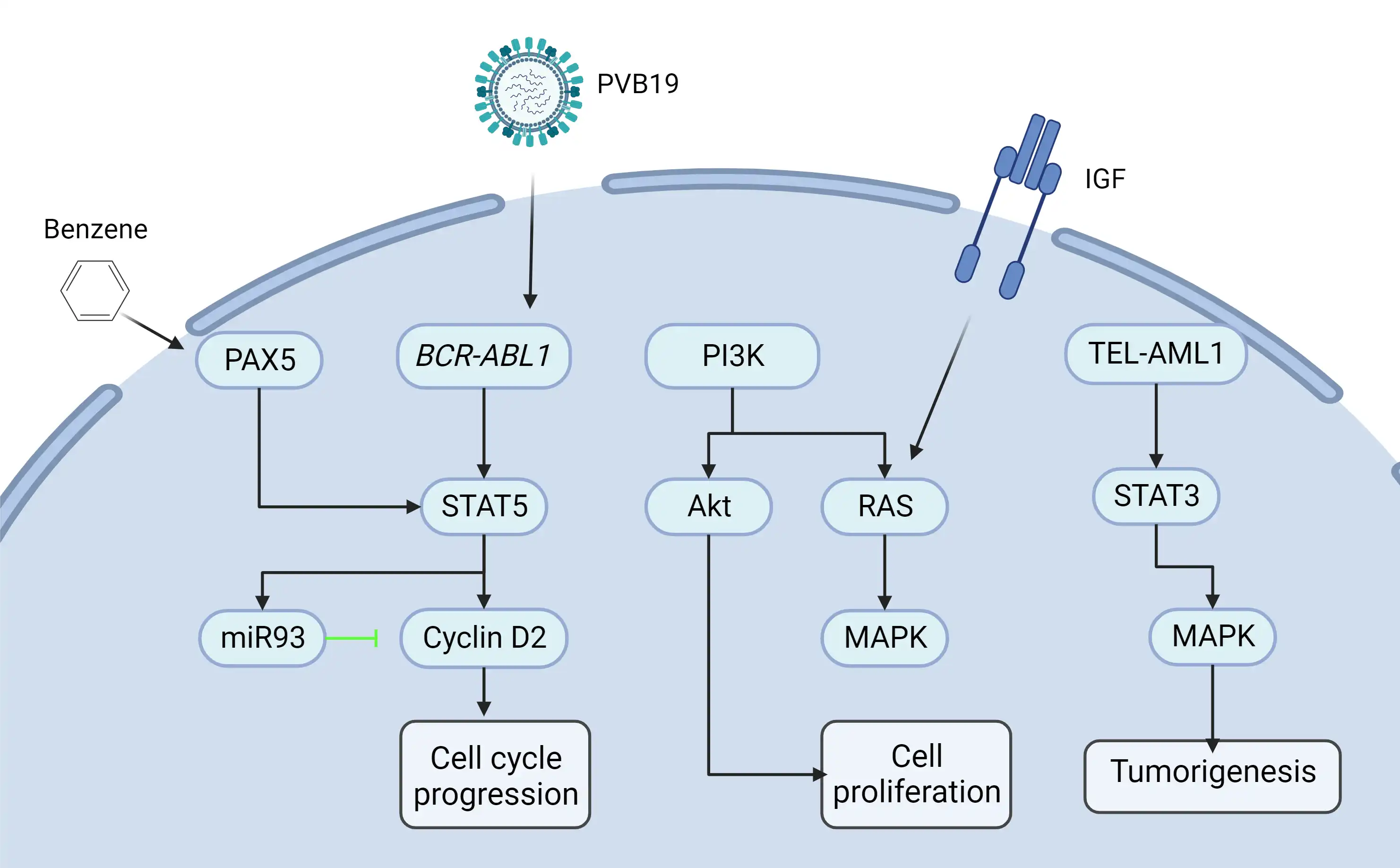 B-ALL results from a series of genetic mutations followed by clonal expansion, differentiation, cell proliferation, and dysregulated cell apoptosis. The molecular pathways involved in B-ALL pathogenesis are detailed in Figure 3.7