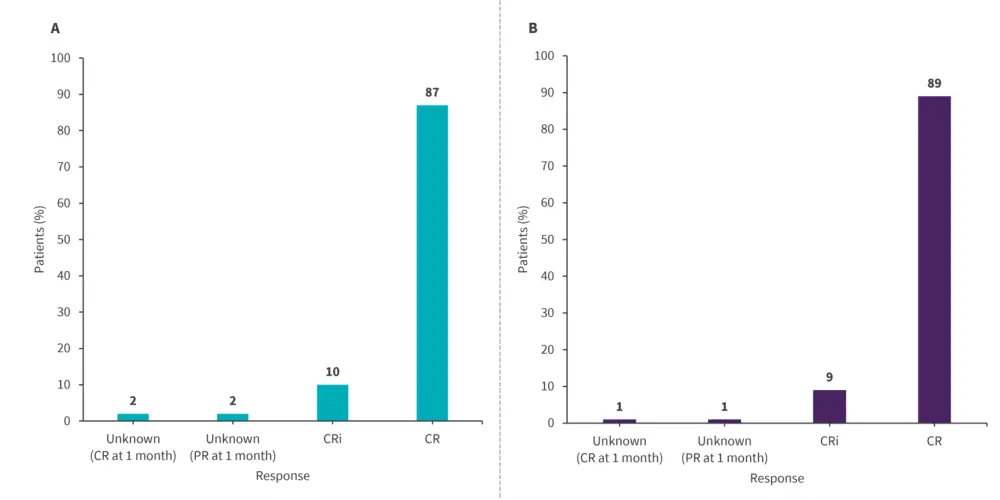 The primary endpoint was objective response rate, including MRD-negative CR and CRi 3 months after the infusion.