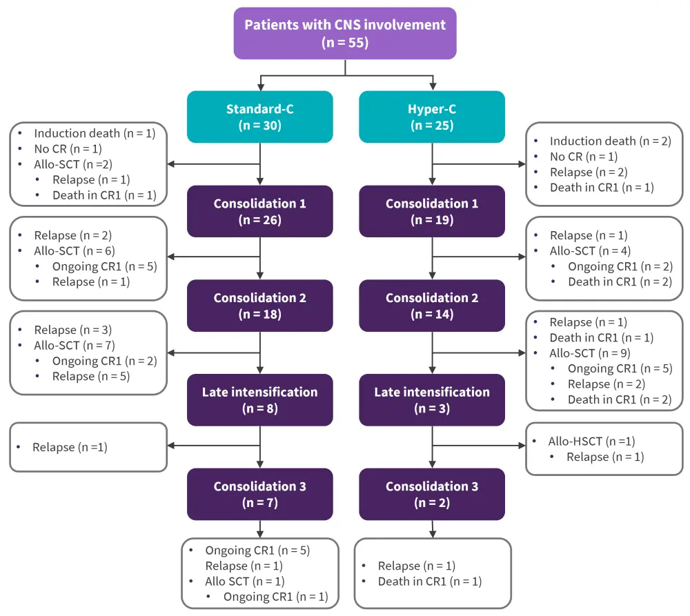 allo-SCT, allogeneic stem cell transplantation; CNS, central nervous system; CR, complete remission.