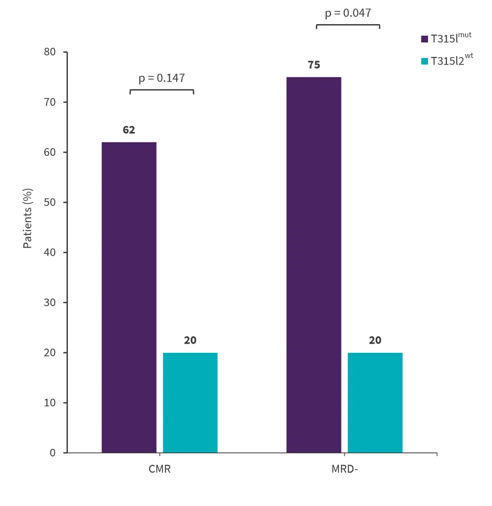 • CMR and MRD rates were significantly higher in patients with vs without the T315l mutation (Figure 2).