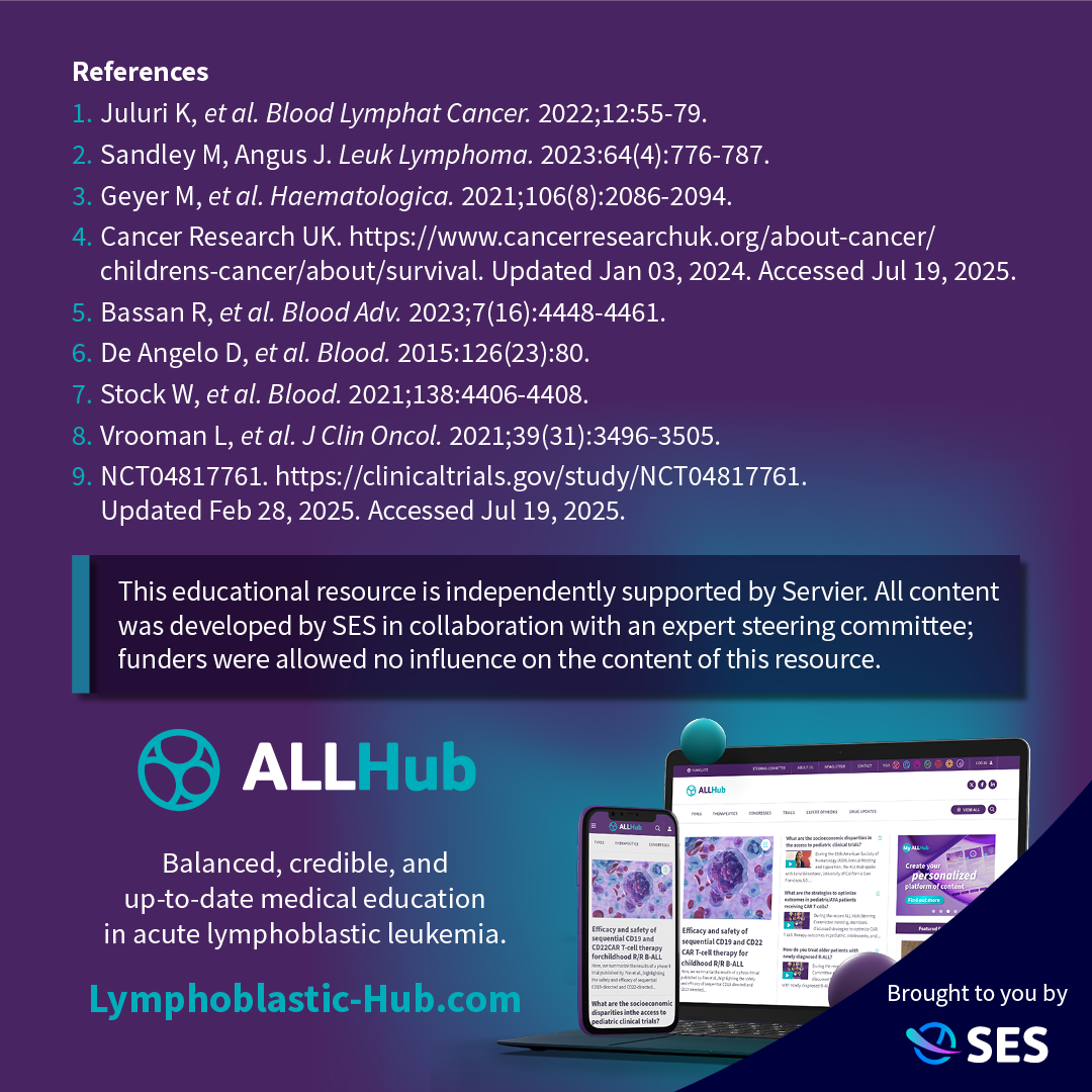 The ALL Hub is an independent medical education platform, sponsored by Amgen, Autolus, Jazz Pharmaceuticals, and Pfizer and supported through an educational grant from the Hippocrate Conference Institute, an association of the Servier Group. The funders are allowed no direct influence on our content. The levels of sponsorship listed are reflective of the amount of funding given. View funders.