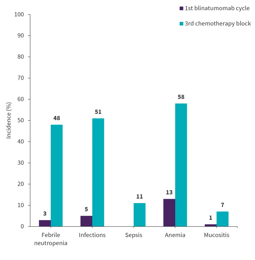 Figure 4. AEs of interest in 3rd block chemotherapy vs 1st blinatumomab arm *