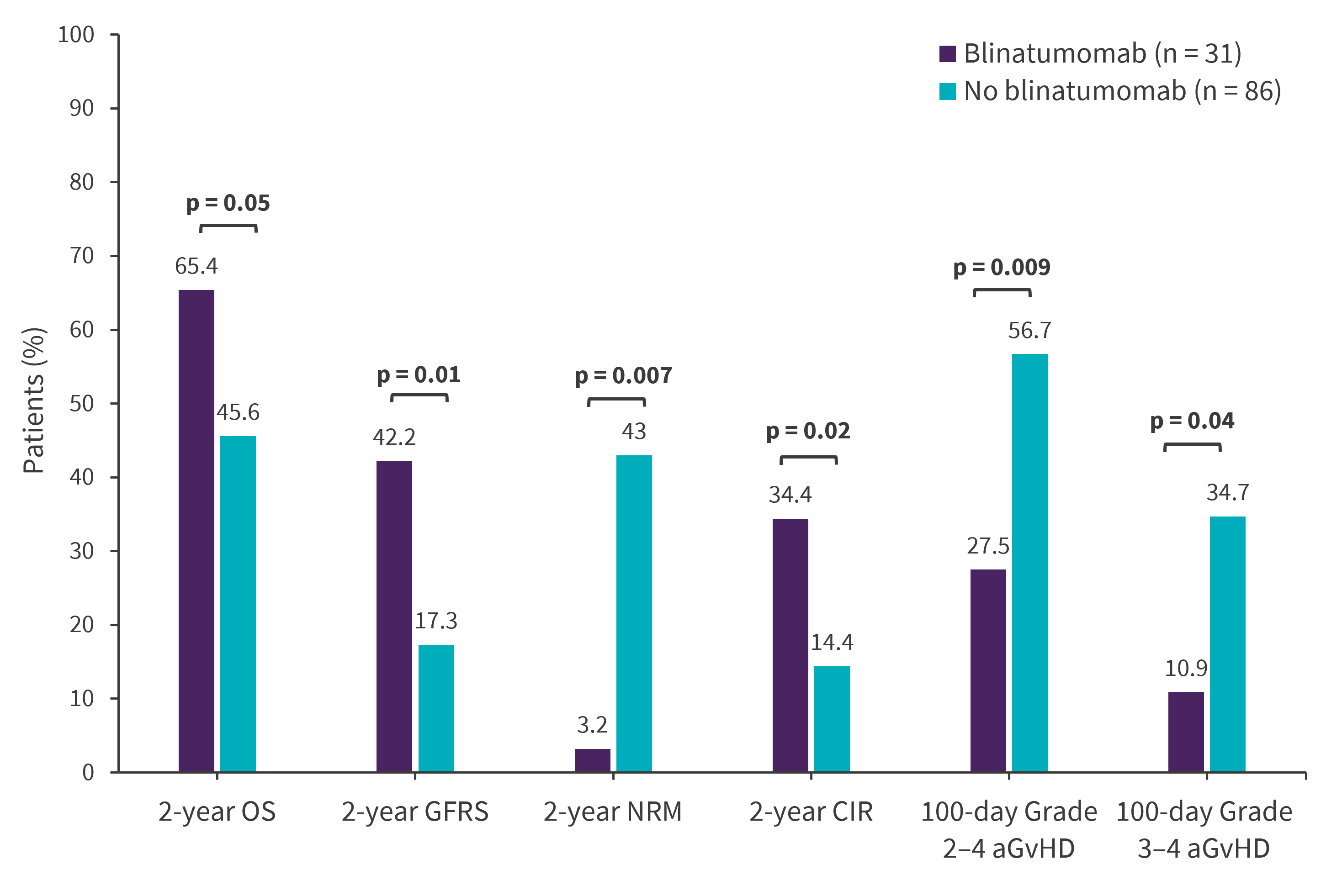Figure 1. 2-year outcomes in blinatumomab treated vs no blinatumomab groups*