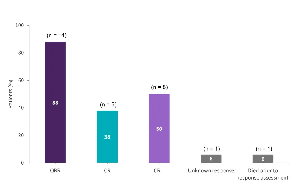 CR, complete remission, CRi, complete response with incomplete blood count recovery; ORR, overall remission rate.