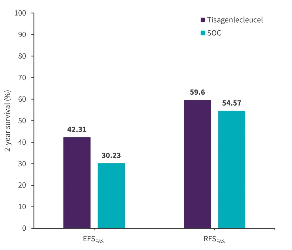 Figure 3. 2-year EFS and RFS rates in tisagenlecleucel vs SOC group*